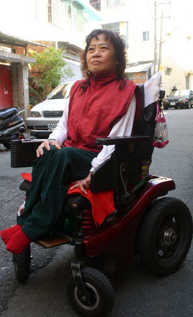 里让她坐在轮椅座位上,绑上安全带後载着她到处去兜风,邻居看了人人都说她好可爱,我们还去